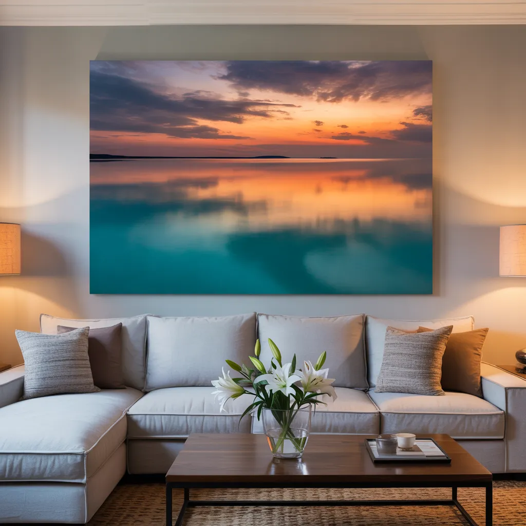 The arrangement and spacing are important considerations when displaying canvas prints. Multiple pieces grouped together create a dynamic focal point, while a single statement piece draws attention in a minimalist setting. Consider height as well; artwork placement at eye level ensures ideal viewing.